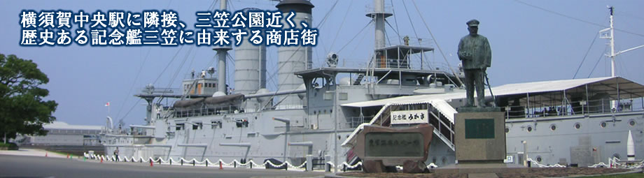 横須賀中央駅から歩いて3分、名前は近くの三笠公園にある記念艦「三笠」に由来しています。