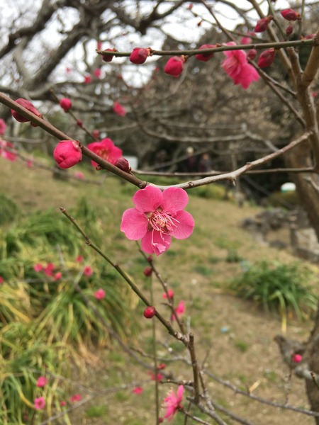 昨日開花の情報で田浦梅林にってきました。 曇りだったので少々寒かったですが、だいたい7〜8分咲きくらいかなっ 感じでした。もう少し暖かくならないとパッとはいかないのかなって? もう少ししたら見頃でしょうから、お弁当持ってハイキングもいいですね お昼食べてから、横横道路の上の陸橋をわたって、東逗子までトレッキンぐ。静かな森の中を歩くとホッとします。